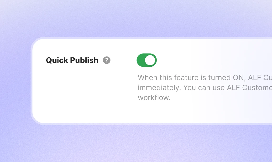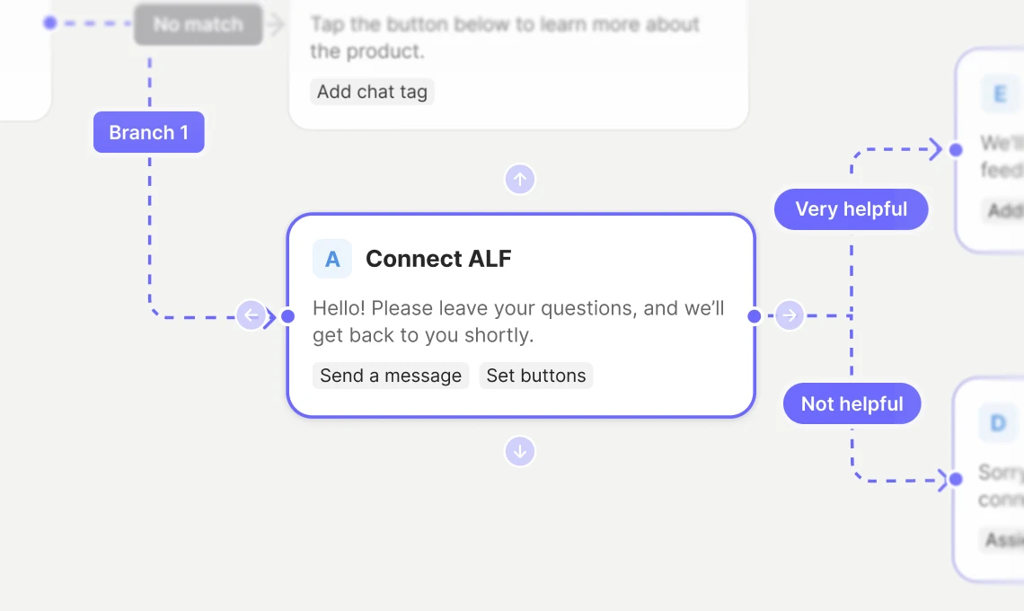 ALF can handle customers instantly even without a workflow. Set filters or agent handoff rules to flexibly fit every situation.