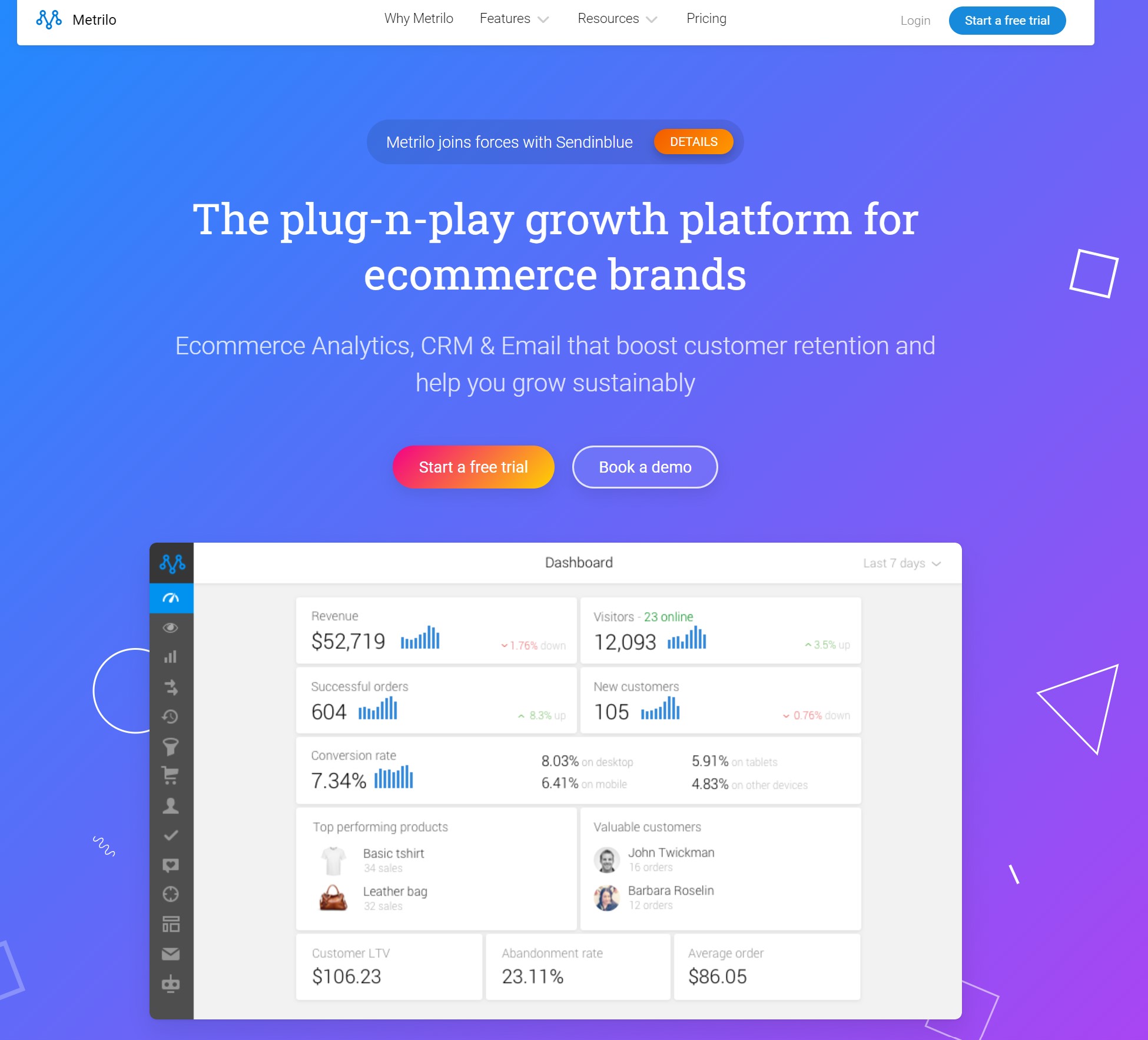 Another strong Shopify CRM to consider for your online store is Metrilo.