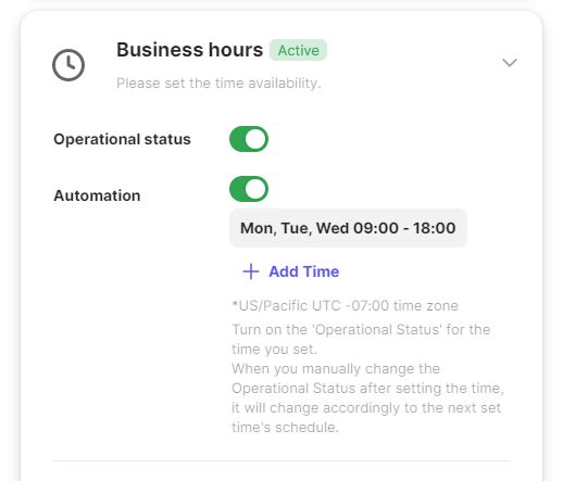 Adjust your operational hours to match your holidays. You can easily change your status settings before you head off on vacation.