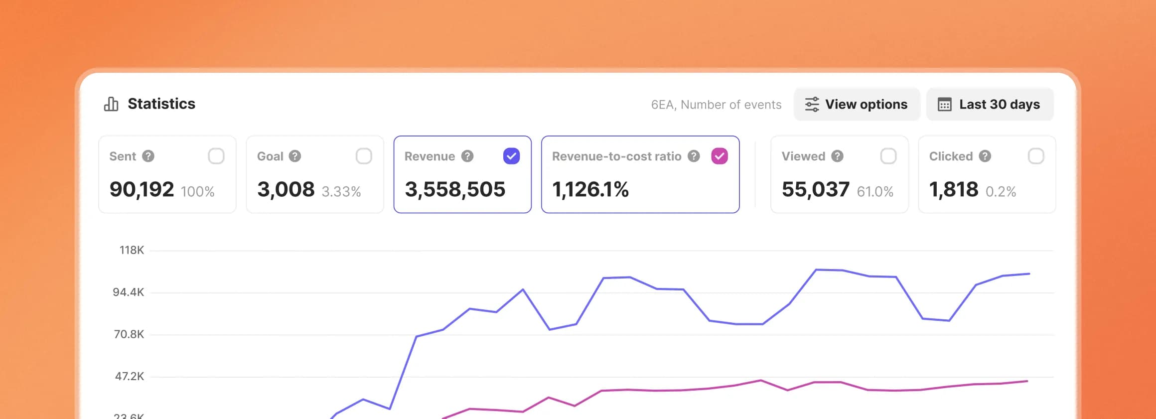 Measure sends, clicks, and revenue to track marketing message performance and optimize your campaigns.
