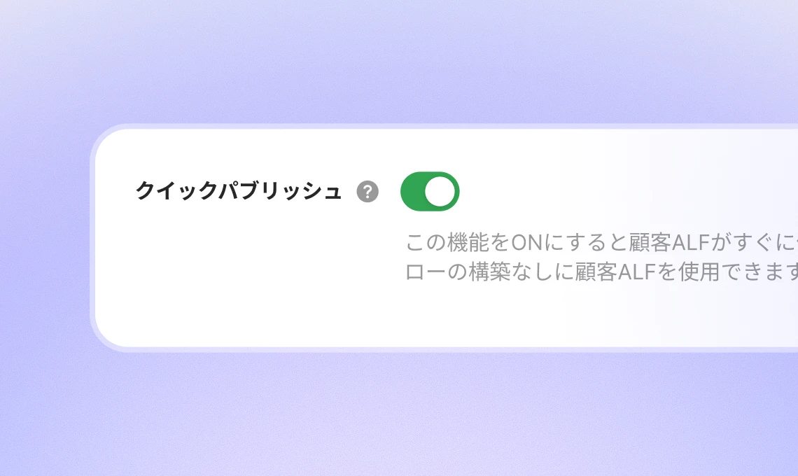 電話でもチャットでも自由にALFをセッティングできます。クイックパブリッシュ