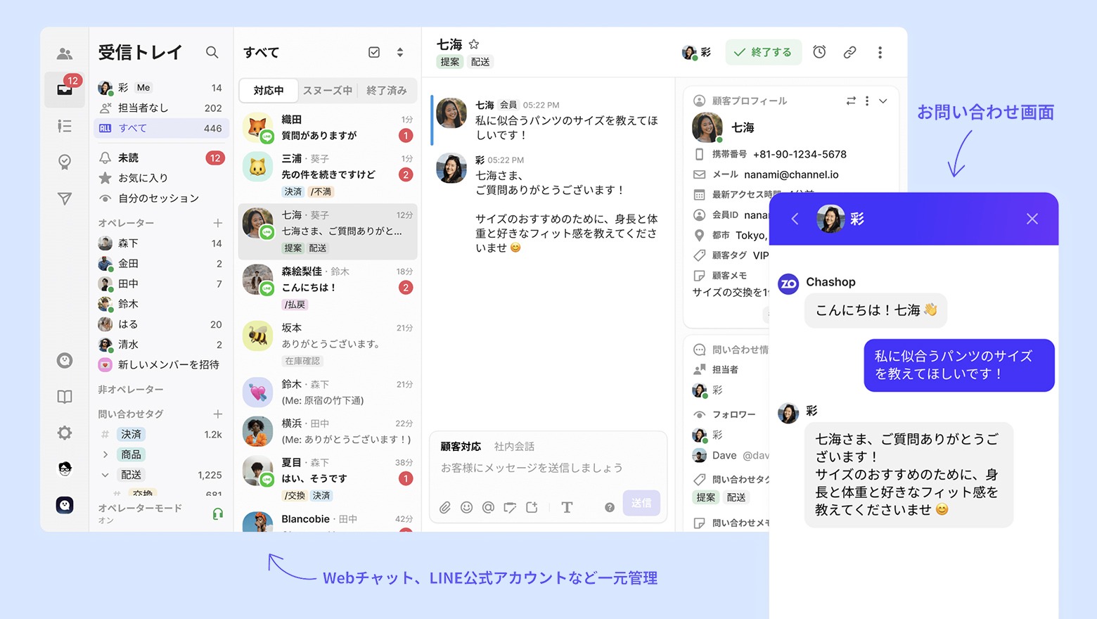 さらに、チャネルトークのように社内連携・自動化・ステータス管理・顧客情報管理を一元化できるツールを活用することで、少人数体制でもスムーズな運用が実現しやすくなります。