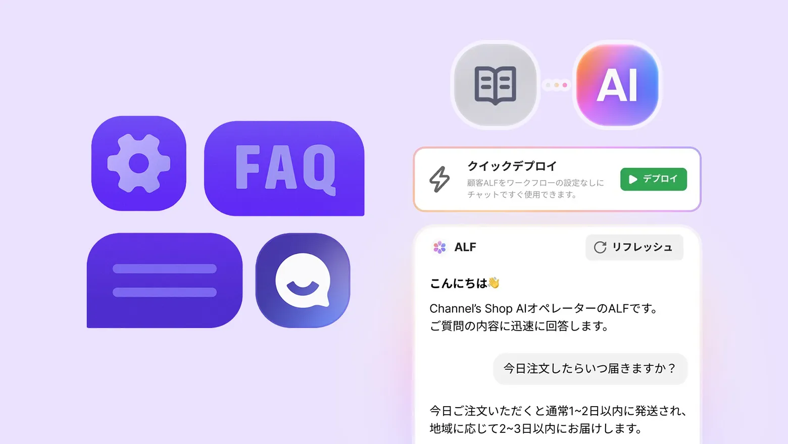 AIエージェント ALFはオペレーターの代わりに顧客からのお問い合わせに対応します。