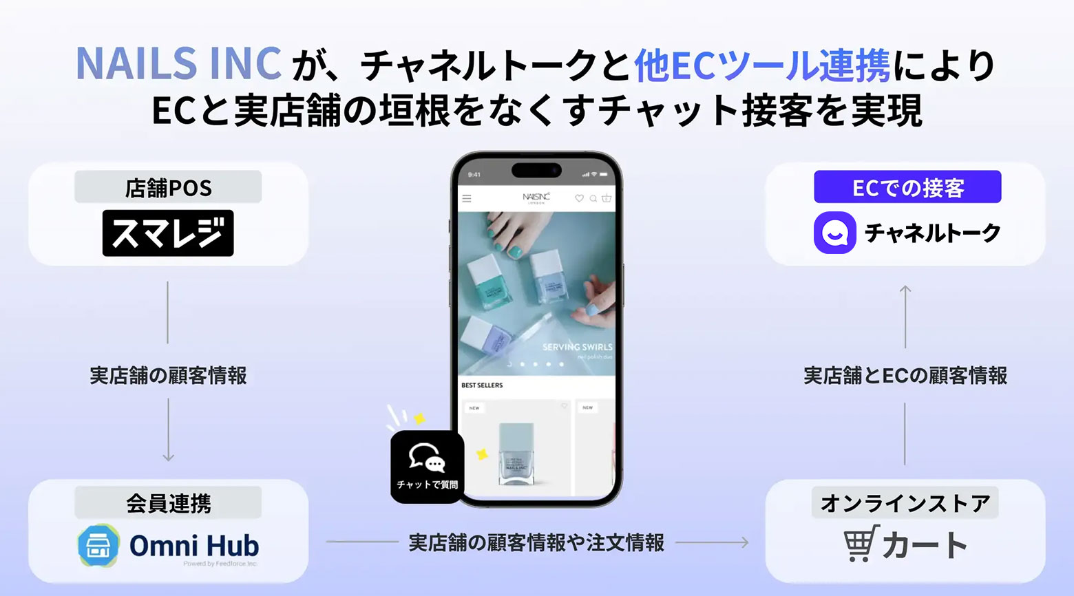 実際に、ロンドン発のファッションネイルブランド「NAILS INC(ネイルズインク)」様では、実店舗とECプラットフォーム(Shopify)のデータを統合することで、顧客一人ひとりの好みに合わせた「店舗さながらのおもてなし」をデジタル上で実現。