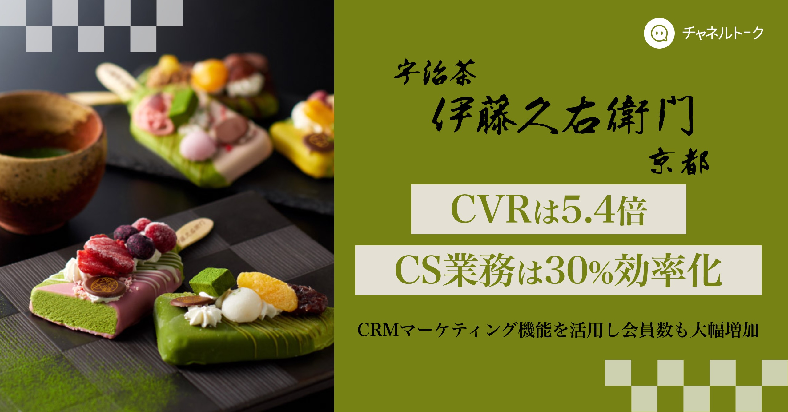 江戸時代後期創業の老舗、株式会社伊藤久右衛門は、チャネルトークのCRMマーケティング機能を活用し、サイト訪問者に対してポップアップバナーで季節キャンペーンやお得情報を配信。バナー閲覧後のCVRは、以前利用していた別ツールの3.9%から21.2%へと約5.4倍に向上しました。