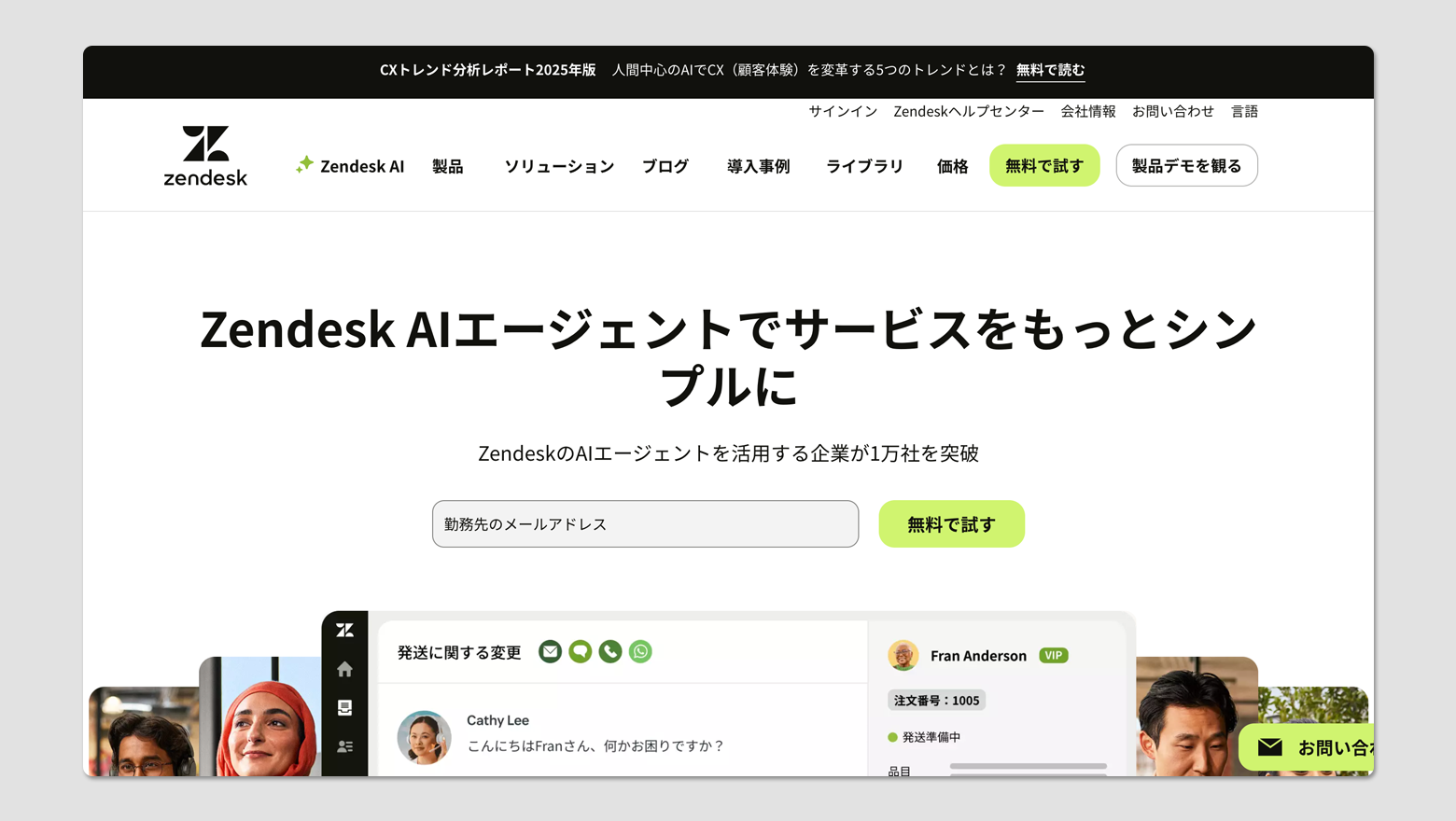 あらゆるチャネルからのメッセージを一元管理する「チケット管理」の先駆けです。効率的に大量のタスクを処理できる設計に定評がありますが、顧客との親密な距離感を重視する場合は運用の工夫が必要です。