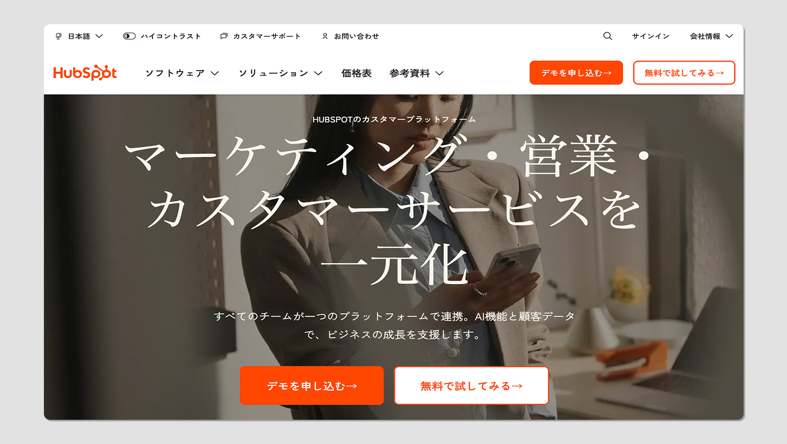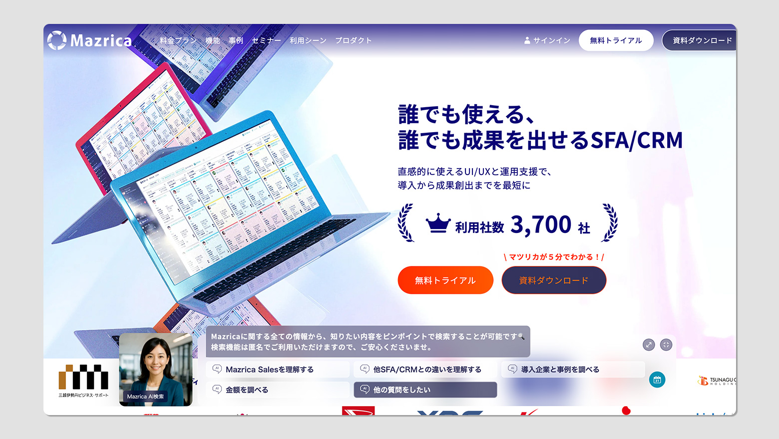 マーケティング、営業、CSの各フェーズを一気通貫で管理できるのが強みです。UIが非常に直感的で、現場のメンバーが迷わず使い始められるのが特徴です。
