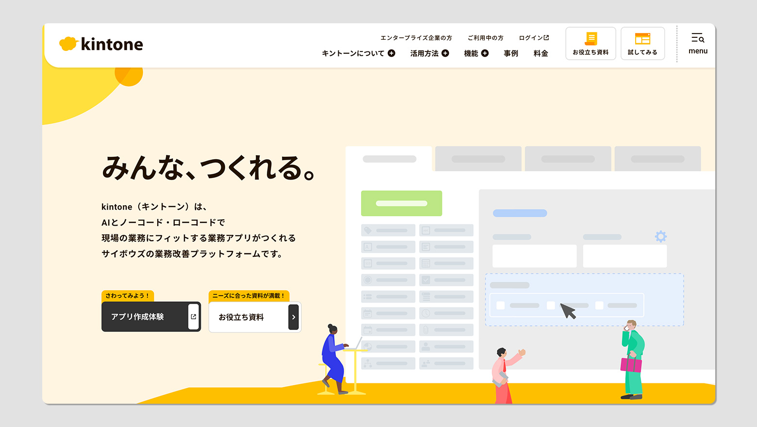 プログラミングなしで自社に最適な管理アプリを作成できます。自社特有の管理項目が多い企業にフィットします。