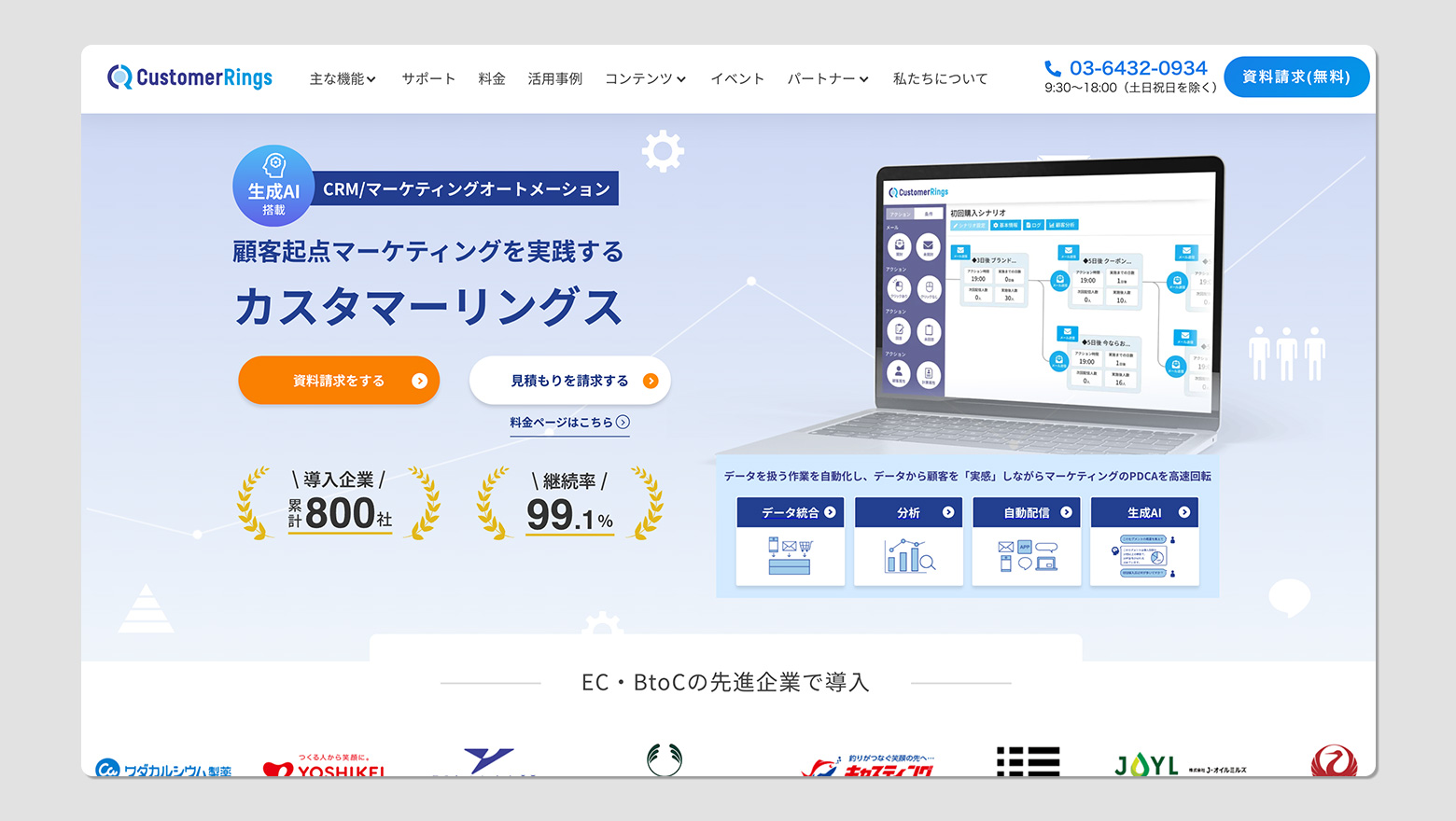 分析に特化したCRM/MAツール。顧客を細かくセグメントし、一人ひとりに合わせたアクションを導き出します。