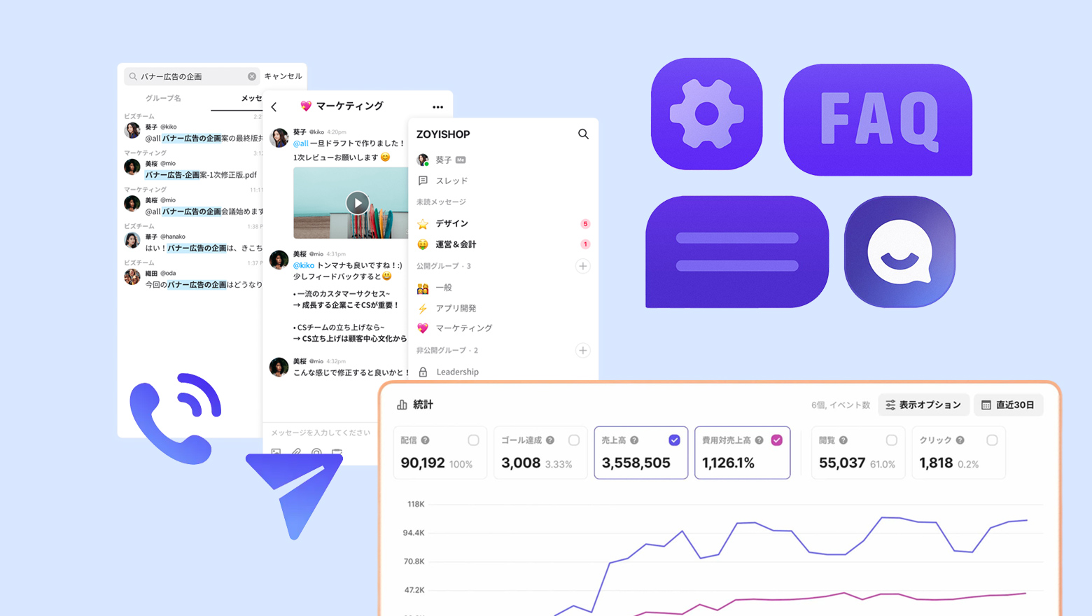 さらに、お客様がサイトを離れた後もメールやSMSで通知が届くため、会話が途切れることがありません。加えて、対応状況をリアルタイムで分析できる統計機能も備わっており、チーム全体の改善にも活かせます。