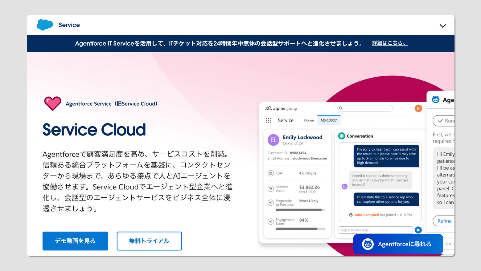 チャット・メール・音声の全チャネルに対応し、自然言語での指示でAIエージェントのロジックを構築できる「AOP(Agent Operating Procedures)」が特徴。対話データを統合して継続的にAIが学習する仕組みになっています。