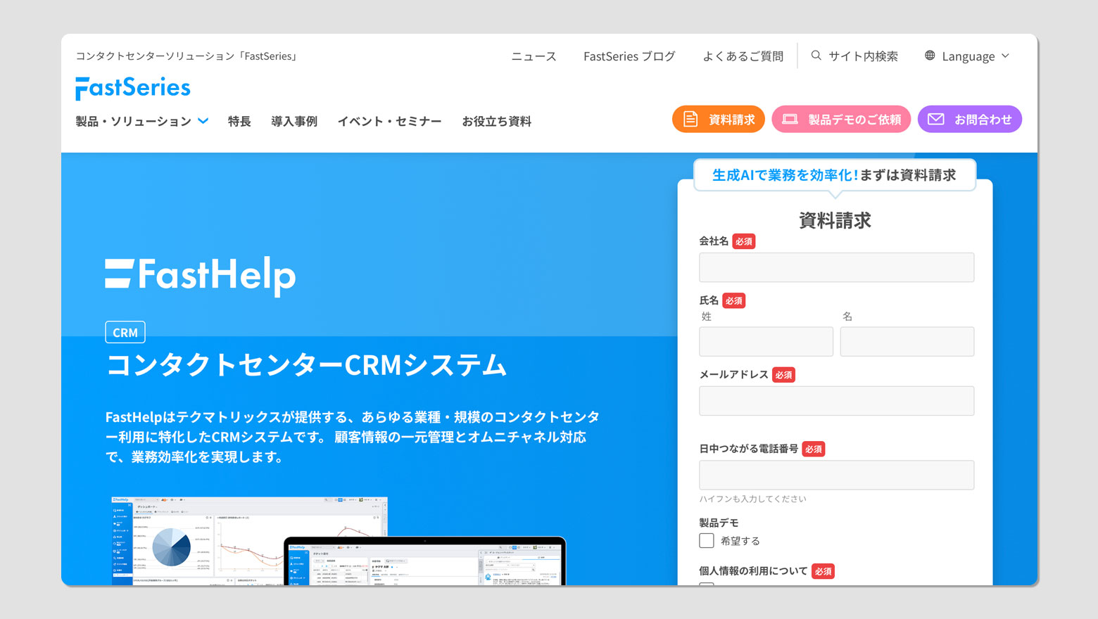 FastHelpは、テクマトリックスが提供するコンタクトセンター向けCRMシステムです。