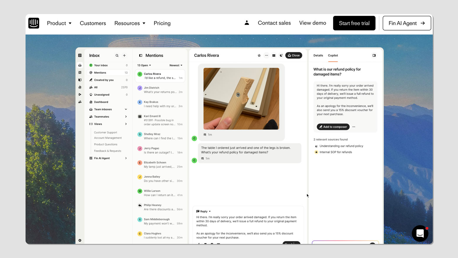 45言語に対応し、独自のAIエンジン「Fin AI Engine™」が問い合わせの理解・検索・回答を一貫して処理。既存のヘルプデスク(Zendesk、Salesforce等)とも連携可能で、導入の柔軟性が高く、平均解決率は約51%と公表されています。