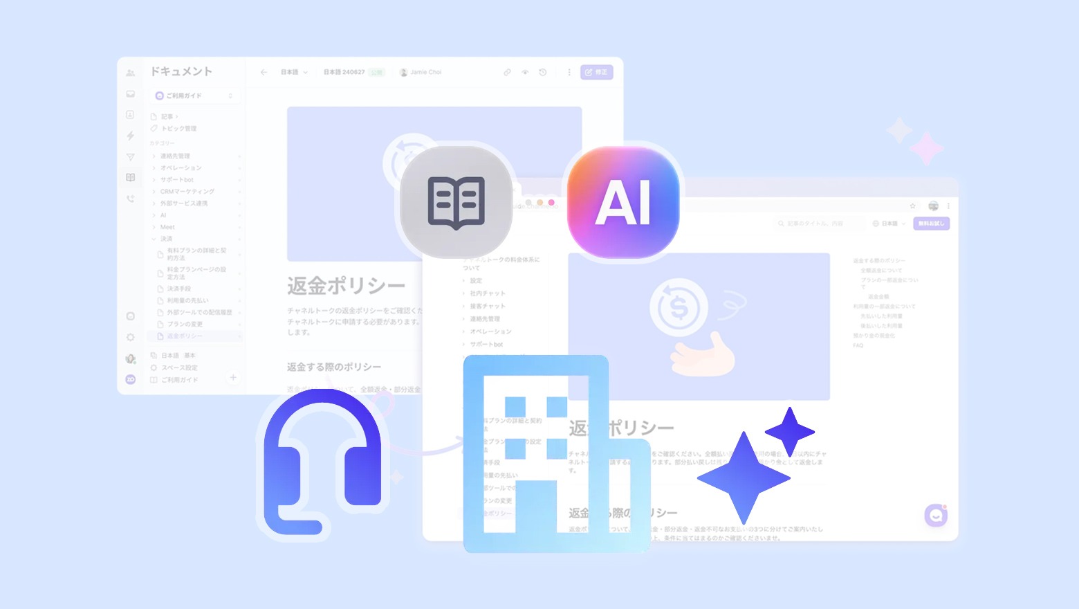 チャネルトークのドキュメント機能を利用する最大のメリットは、作成した「使い方ガイド」がそのままAIサポート機能の参照ソースになる点です。