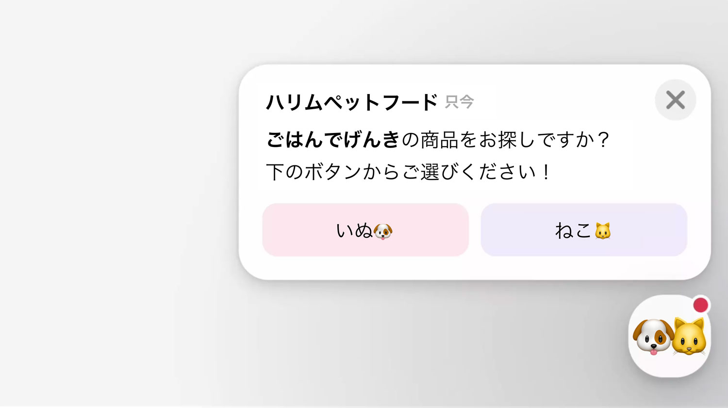 ハリムペットフード「ごはんでげんき」マーケティングメッセージのポップアップ