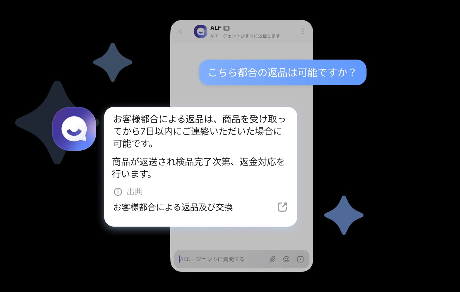 複数のプラットフォームを往復する必要ありません。チャネルトークの中で全て解決します。