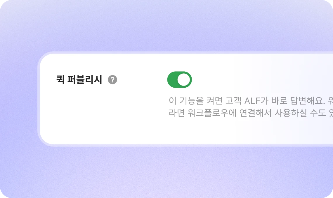 전화에도, 채팅에도 원하는 대로 ALF를 세팅하세요퀵 퍼블리시