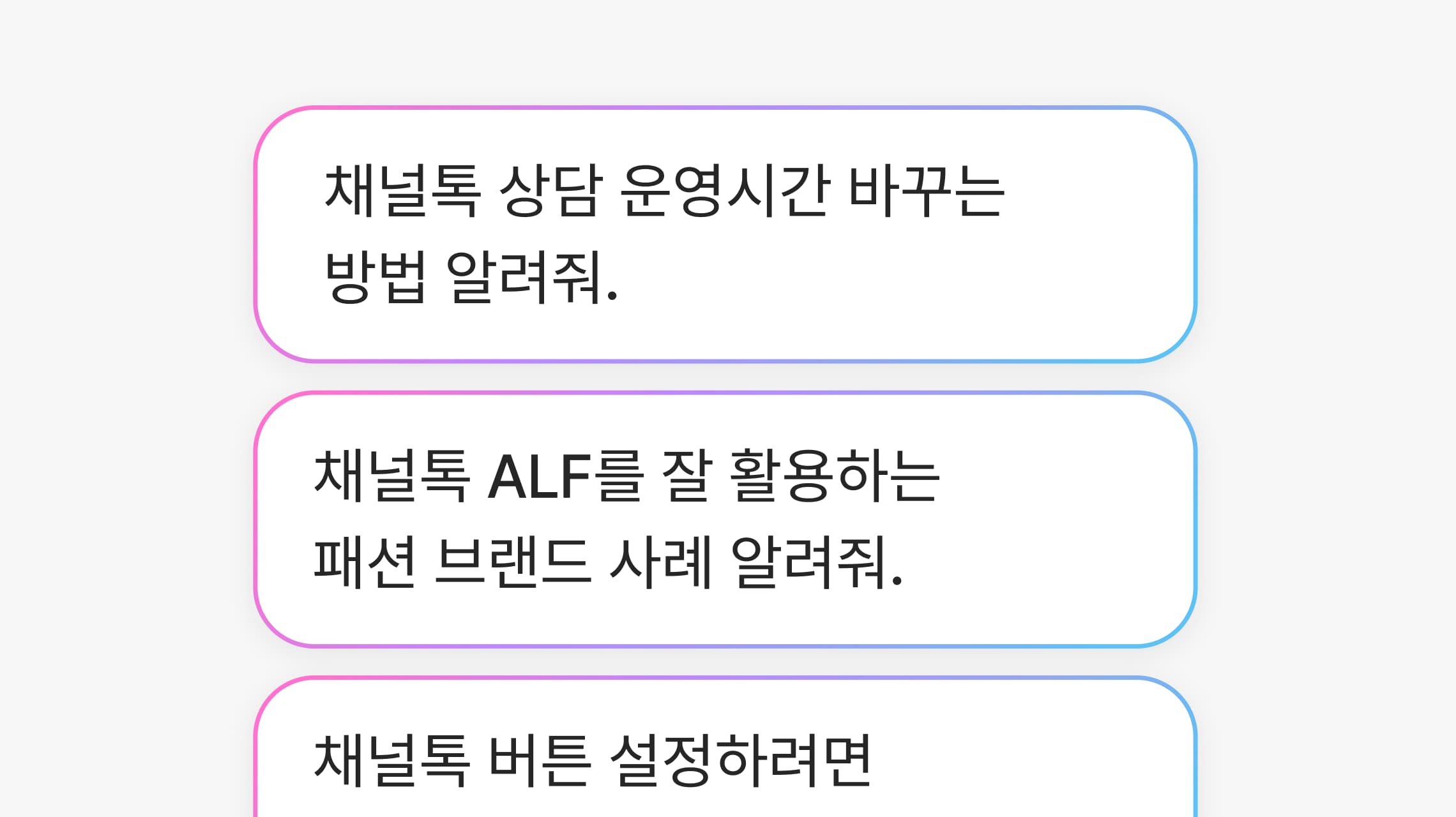 팀 ALF가 채널톡 가이드와 성공사례를 참조하여 바로 답변해 드립니다.