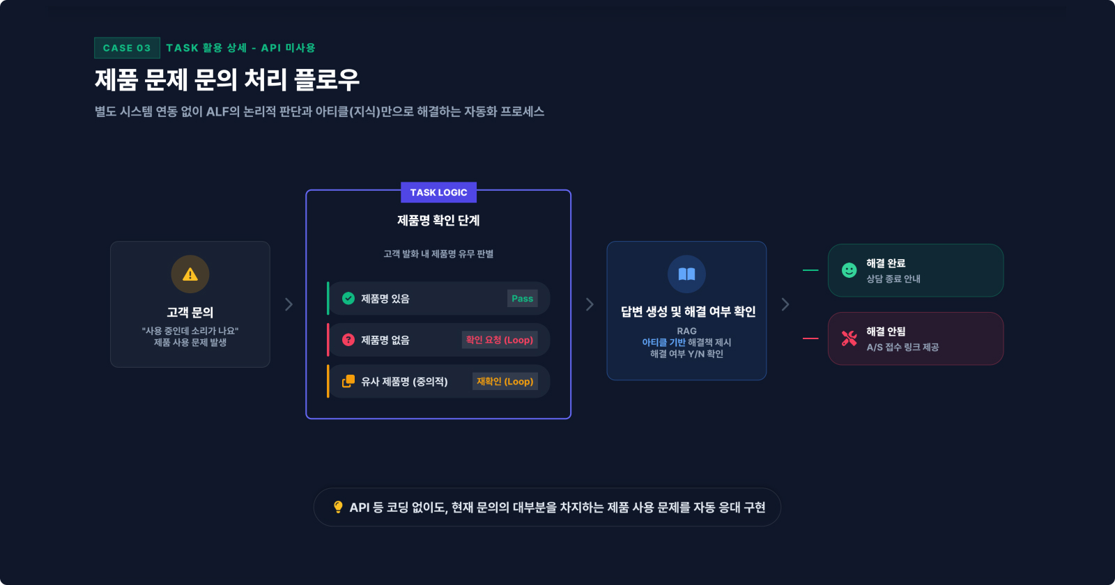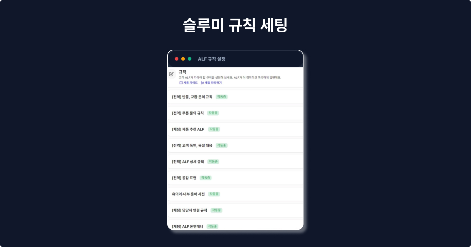 규칙과 지식을 정교하게 설계해, 제품 추천부터 사용법 문의까지 ALF가 스스로 해결해요.