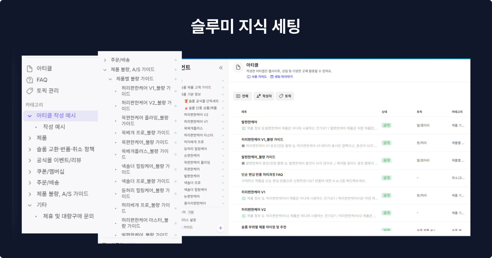 더욱 매끄러운 상담 경험을 제공하기 위해 슬룸은 고객 문의 유형을 구매 전후로 세분화하고, 유형별 처리 방식을 다시 설계했습니다.