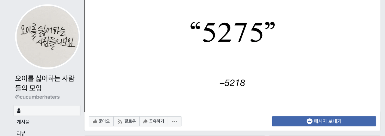 페이스북 페이지 '오이를 싫어하는 사람들의 모임'