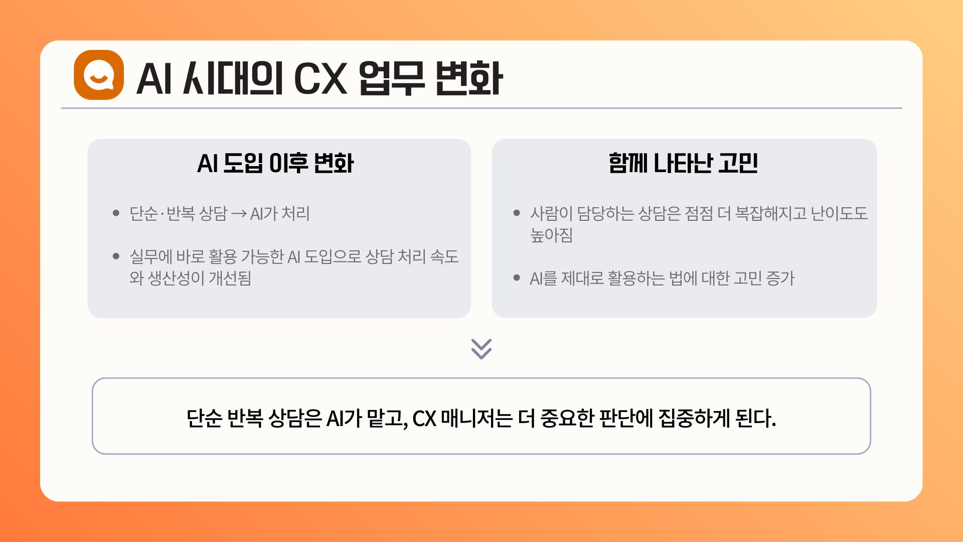 AI를 매일 쓰지만, 어디까지 맡겨야 할지 고민됩니다. CX팀의 역할은 어떻게 바뀌고 있는 걸까요?