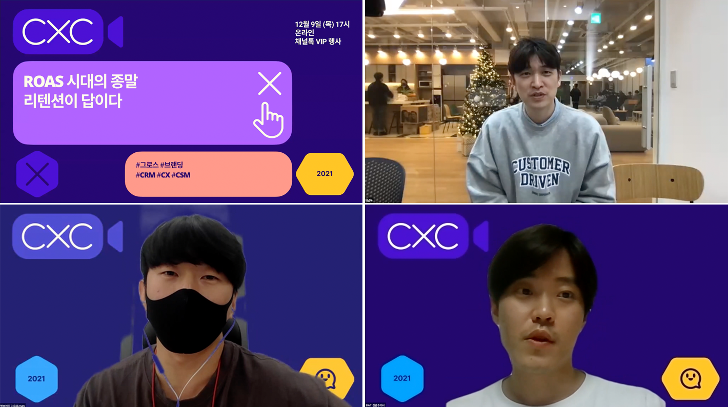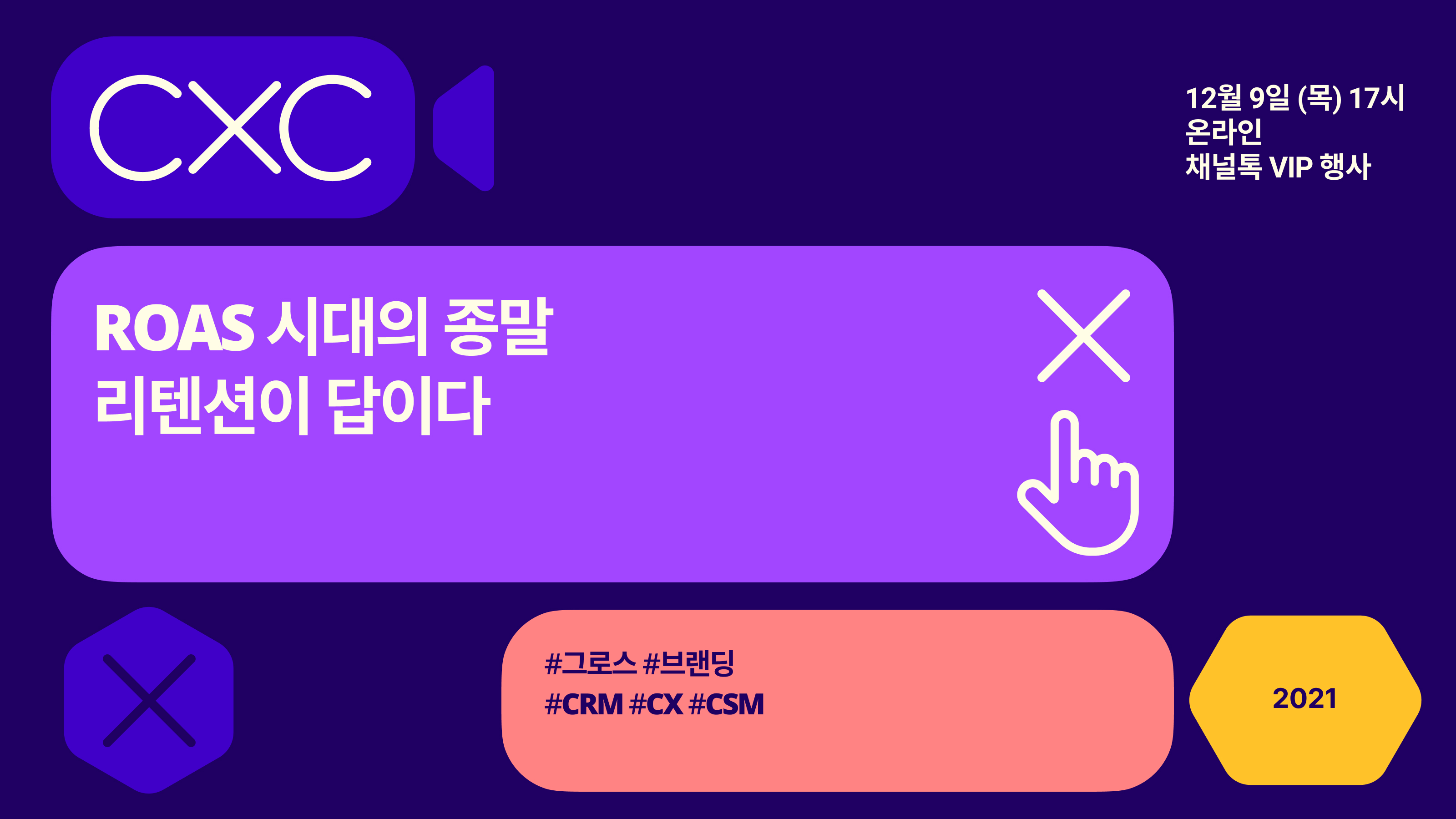 CXC는 최고의 고객 경험(Customer Experience)을 만들기 위해 노력하는 채널톡 VIP 고객사들을 위한 컨퍼런스입니다. 올해는 'ROAS 시대의 종말, 리텐션이 답이다'라는 다소 도발적인 주제로 웨비나 행사를 열었어요.
