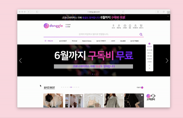 최 : 저희는 구독료 방식으로 BM을 만들었어요. 월 5,500원을 내면 동글에 입점 돼 있는 상품을 살 수 있는 권한이 생깁니다. 지금은 구독료 무료 이벤트 기간이라 구독료를 내지 않고 구매하셨을텐데요, 앞으로는 구독료로 수익을 만들 생각이에요.