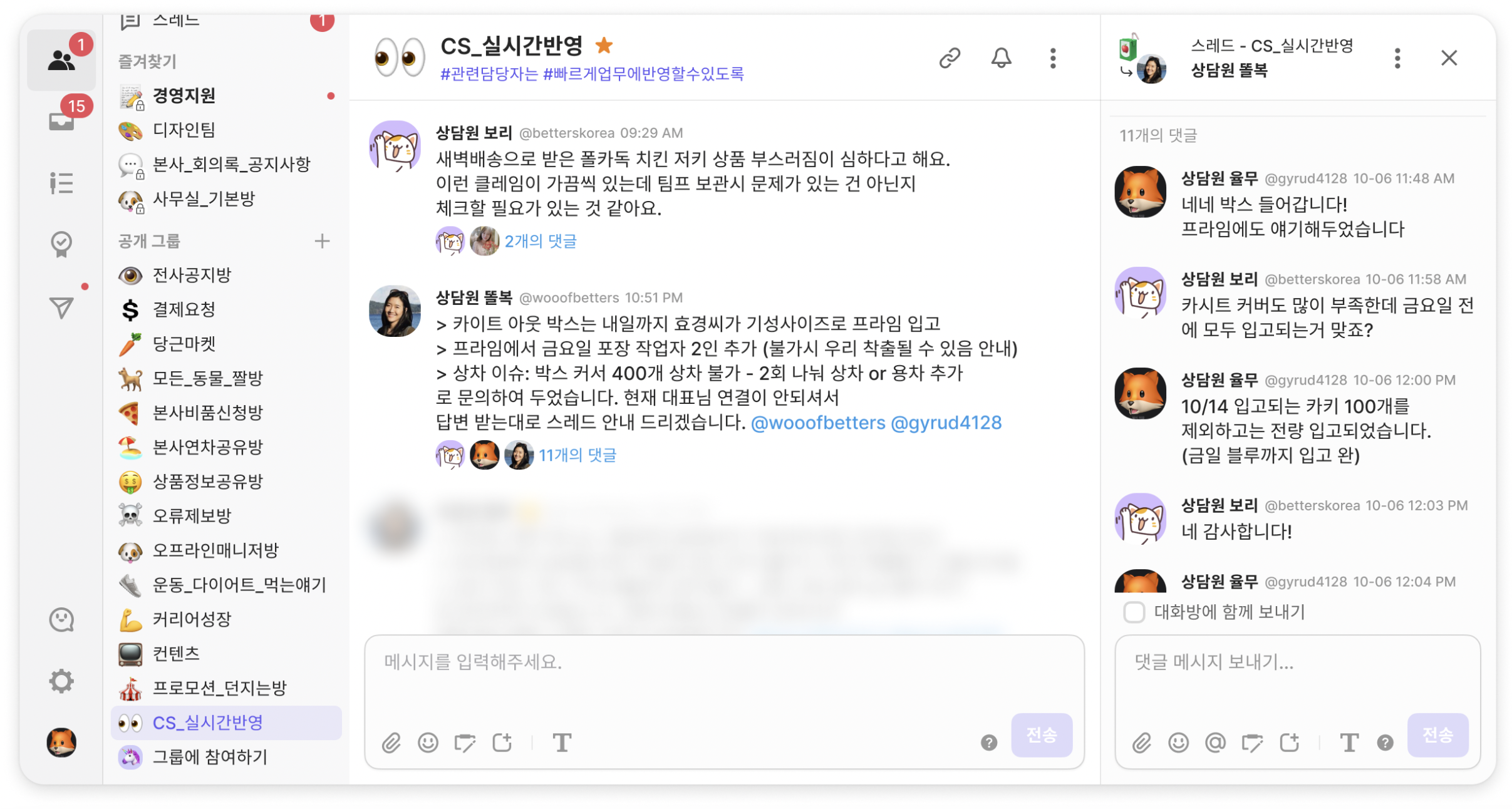 사내 대화와 고객 상담을 번갈아가며 사용할 수 있어요.