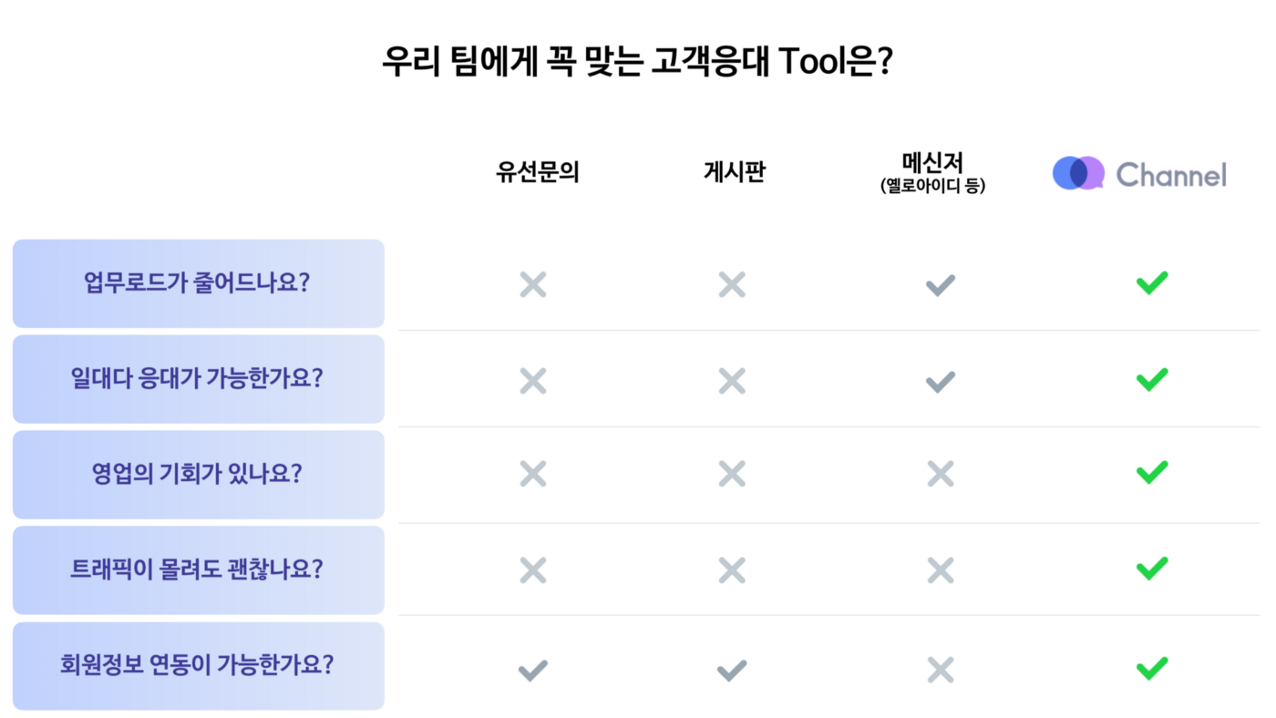 고객응대는 ‘감정노동’으로 분류될 정도로 두려운 업무입니다. 누구나 개선이 필요하다고 생각은 하지만, 새로운 시스템을 도입했다 괜히 일만 많아질 것 같아 결국 그대로 방치하길 반복합니다. 채널을 통한 고객응대는 다릅니다. 채널은 고객과 비즈니스의 가장 빠르고 편한 접점을 위해 만들어졌기 때문이죠. 이번 글에서는 특별히 채널 도입 전 막연한 두려움을 느끼는 점들에 대해 이야기해보려합니다. 이미 채널을 쓰고 계신 분들도 꼭 한번 읽어주세요 :)