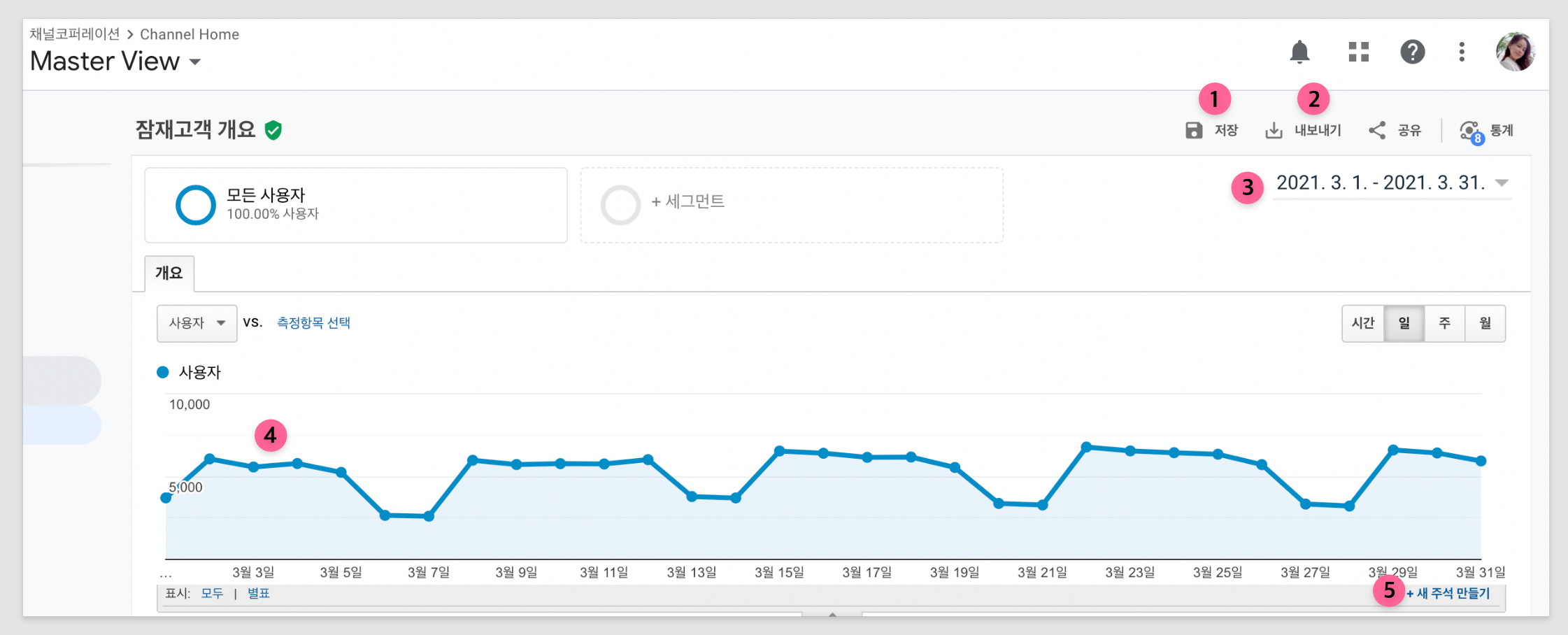 내보내기 : 보고서를 엑셀, 구글 스프레드시트, CSV 등의 파일로 내보낼 수 있어요.
