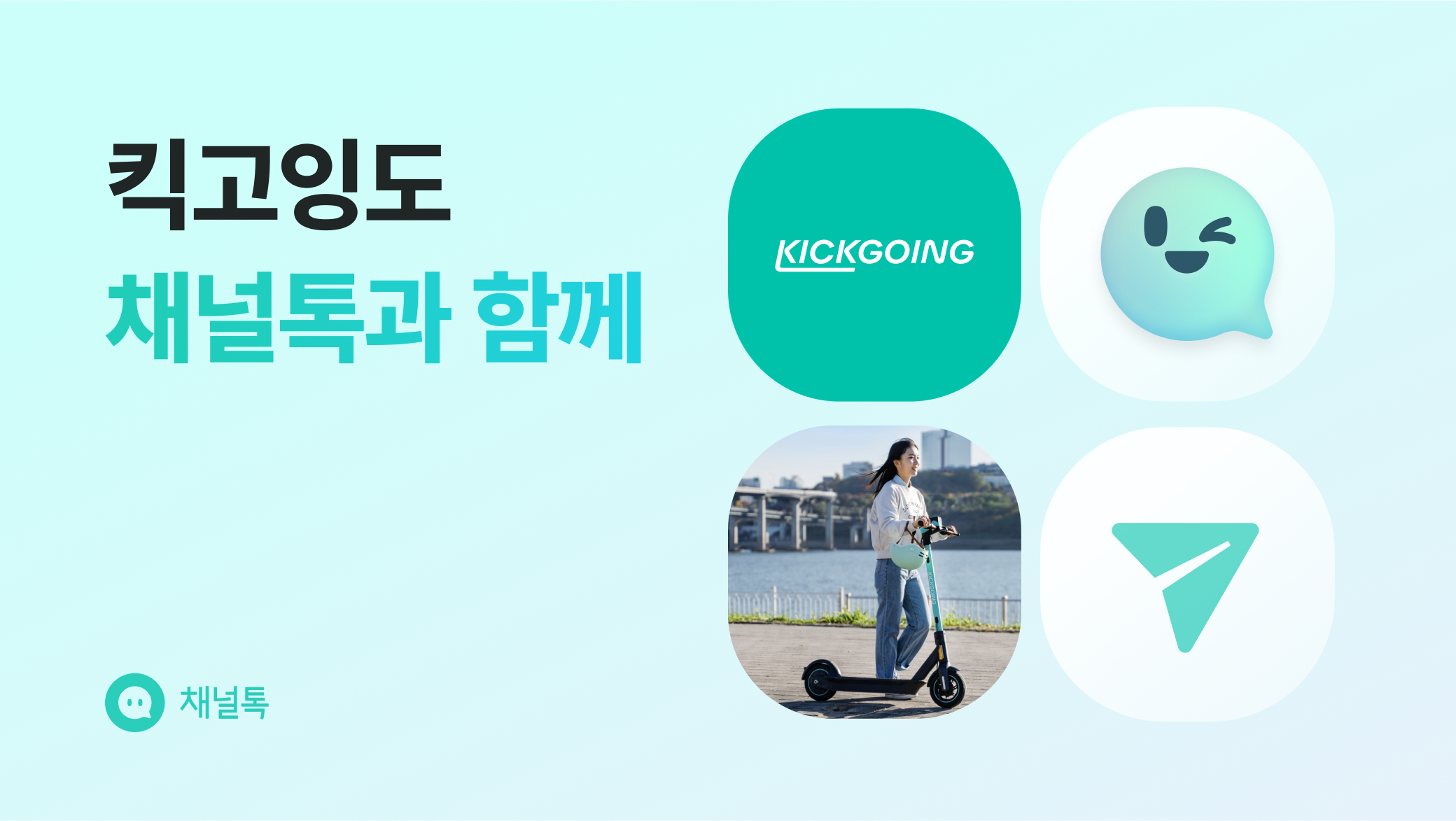 (주)채널코퍼레이션(공동대표 최시원·김재홍)이 퍼스널모빌리티 공유서비스 ‘킥고잉’을 운영하는 (주)올룰로(대표 최영우)에 올인원 비즈니스 메신저 ‘채널톡’을 전사 공급한다고 21일 밝혔다.