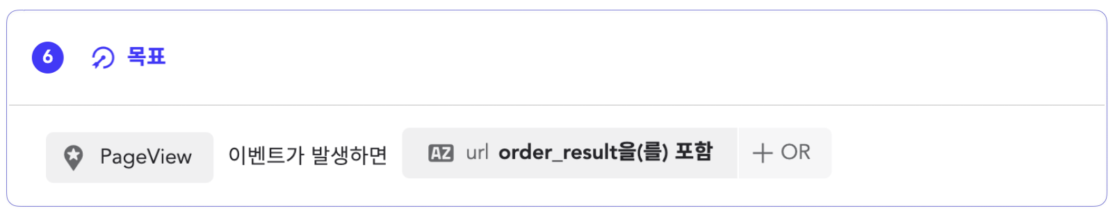 (3) 목표 목표는 재구매입니다. 구매 페이지 중 일부 키워드를 잡아 url '다음을 포함'으로 설정해 놓습니다.