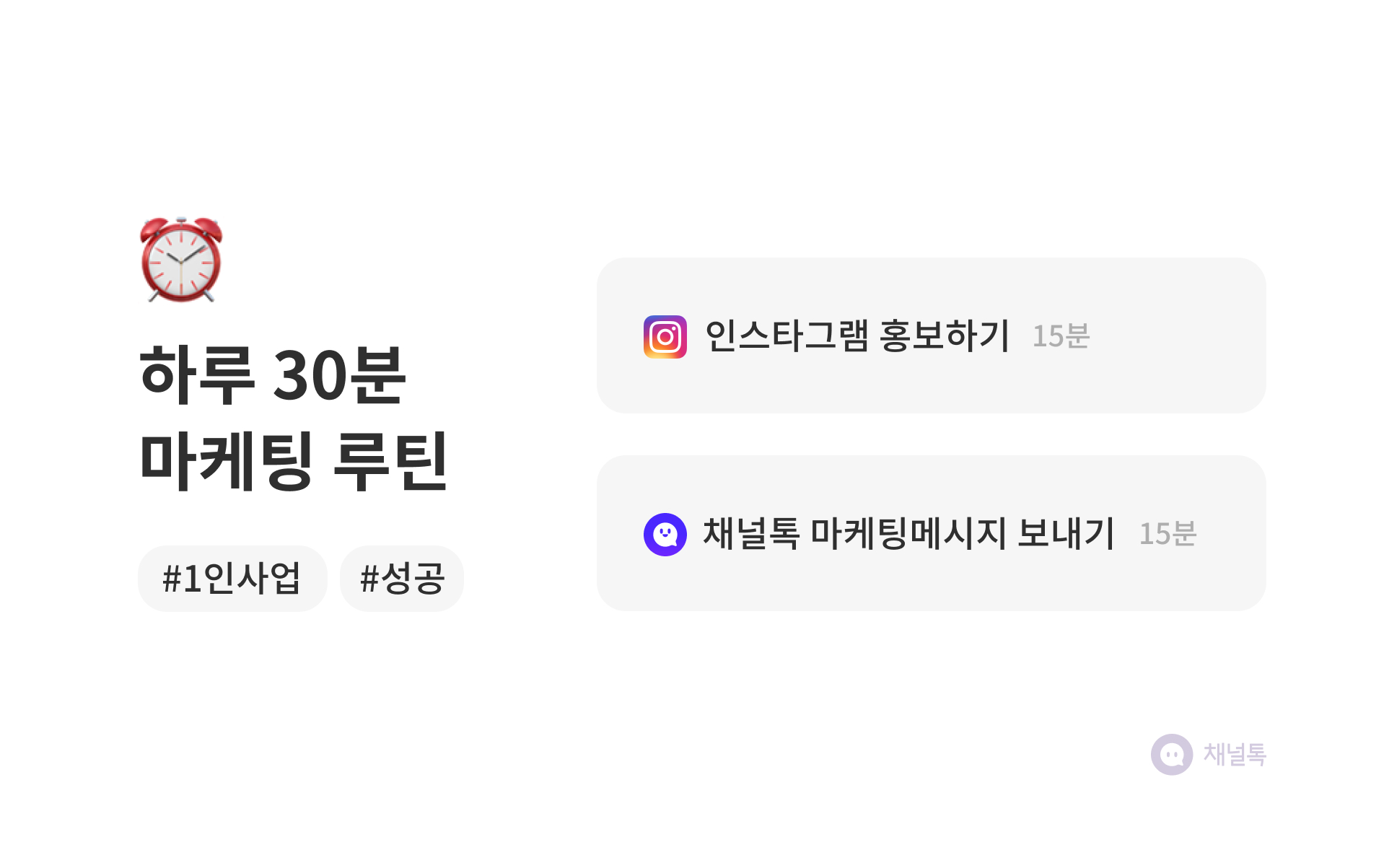 이 마케팅 루틴을 하루 30분씩 꾸준히 실천하신다면, 나 혼자였던 회사를 곧 3명, 5명, 50명 이상으로 직원 수를 늘릴 정도로 우리 브랜드를 성장시킬 수 있을거예요!