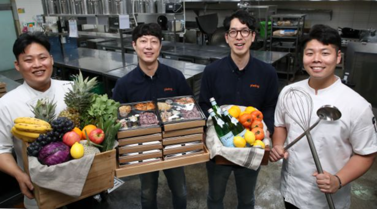 18일 오후 1시 성동구 성수동에 있는 마케팅 스타트업 마켓잇. 평소 휴게실이던 공간이 구내식당으로 변신했다. 이날의 메뉴는 흰쌀밥, 시래기된장국, 제육두루치기 등으로 한끼당 8000원이다. 직원 70명이 일회용 식판에 음식을 담아 회의실, 자기 자리 등 각자가 원하는 곳에서 점심을 먹는다. 이 점심 식사를 차린 플레이팅의 장진호 팀장은 "우리는 찾아가는 스타트업 구내식당”이라며 “음식부터 식기, 잔반 수거까지 전부 책임진다”고 했다.