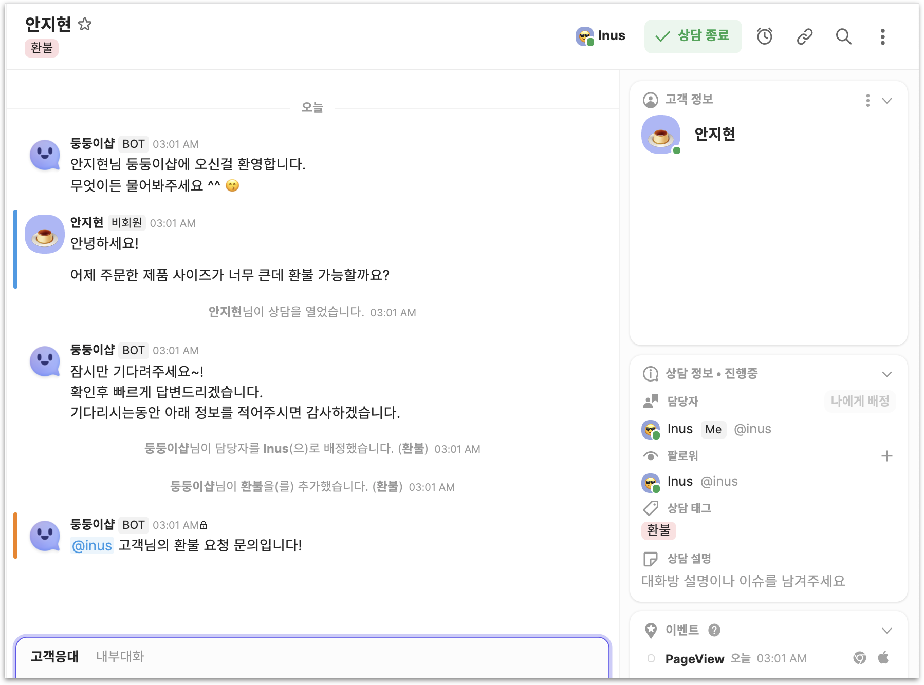 또한, 특정 기간동안 이벤트를 진행하신다면 해당 이벤트에 대한 문의건에 자동으로 태그가 입력되게 설정하신 후, 분석해서 이벤트의 효율 측정에 활용 하실 수 있습니다.