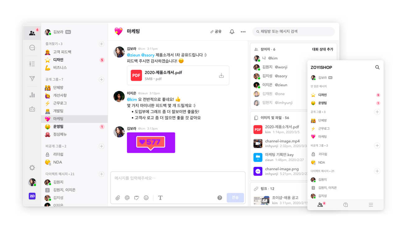 모바일/PC 전용앱 : 언제든지 팀원과 연결. 모바일/PC 안드로이드/ios 모두 지원.