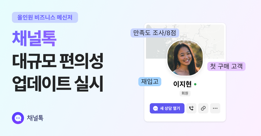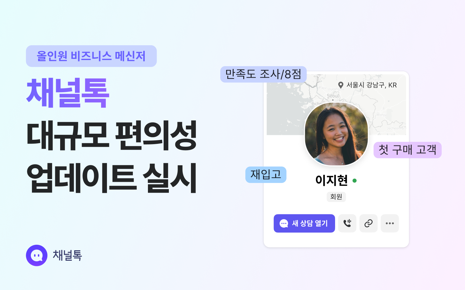 (주)채널코퍼레이션(공동대표 최시원·김재홍)이 운영하는 올인원 비즈니스 메신저 ‘채널톡’이 고객 만족도 강화를 위해 대규모 업데이트를 실시했다고 1일 밝혔다.