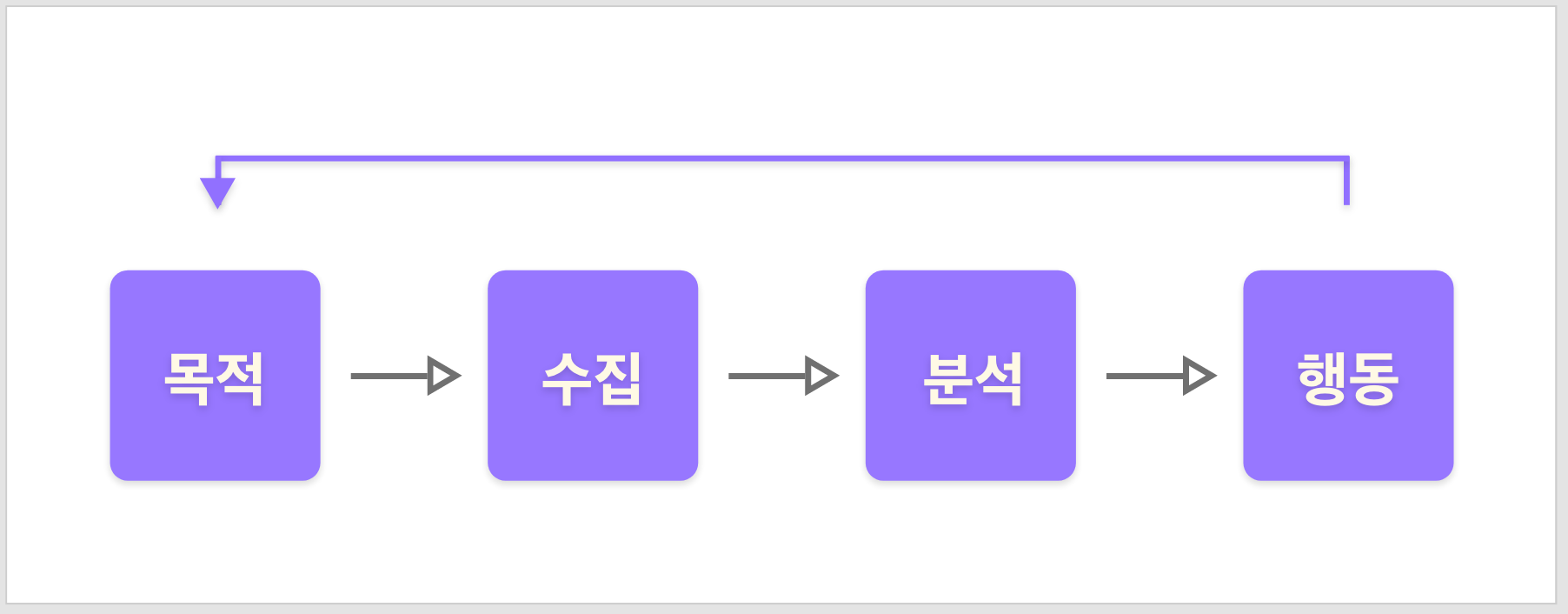 행동을 완료해도 로그 분석 과정이 완전히 끝난 것은 아니예요! 가입률 40%를 달성할 때까지 목적, 수집, 분석, 행동 단계를 반복해요. 접속한 페이지와 사용자수 이외의 데이터가 필요하다면 추가 데이터 수립 계획을 세우거나, 가입페이지 개선이 아닌, 다른 액션 계획을 세울 수 있어요.