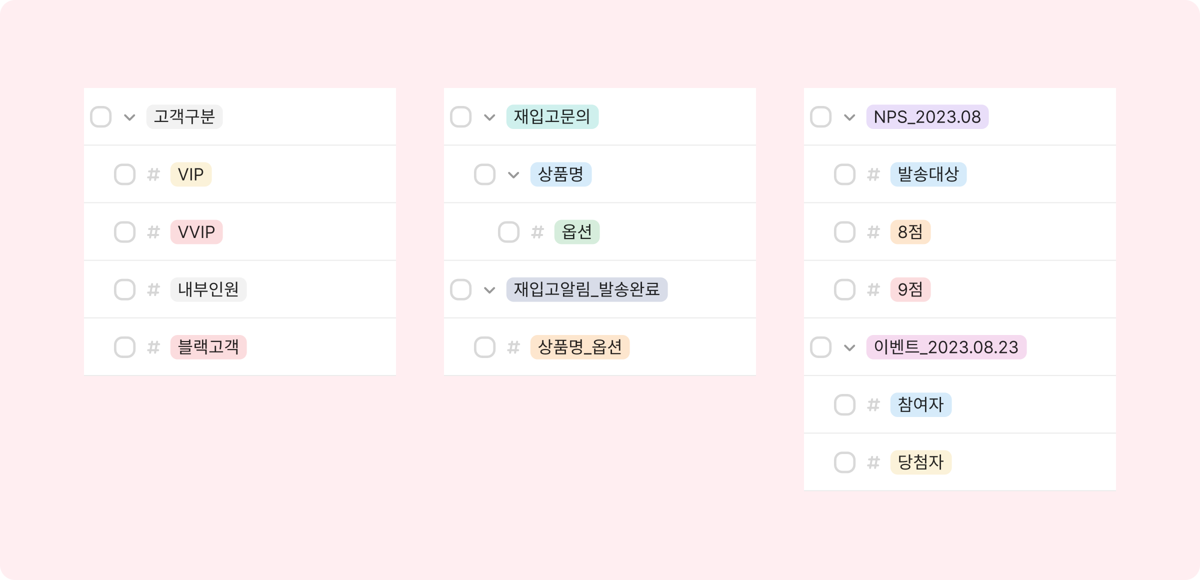 둘째, 고객 태그나 상담 태그를 활용해 고객을 분류하고 있는지 살펴봅니다.