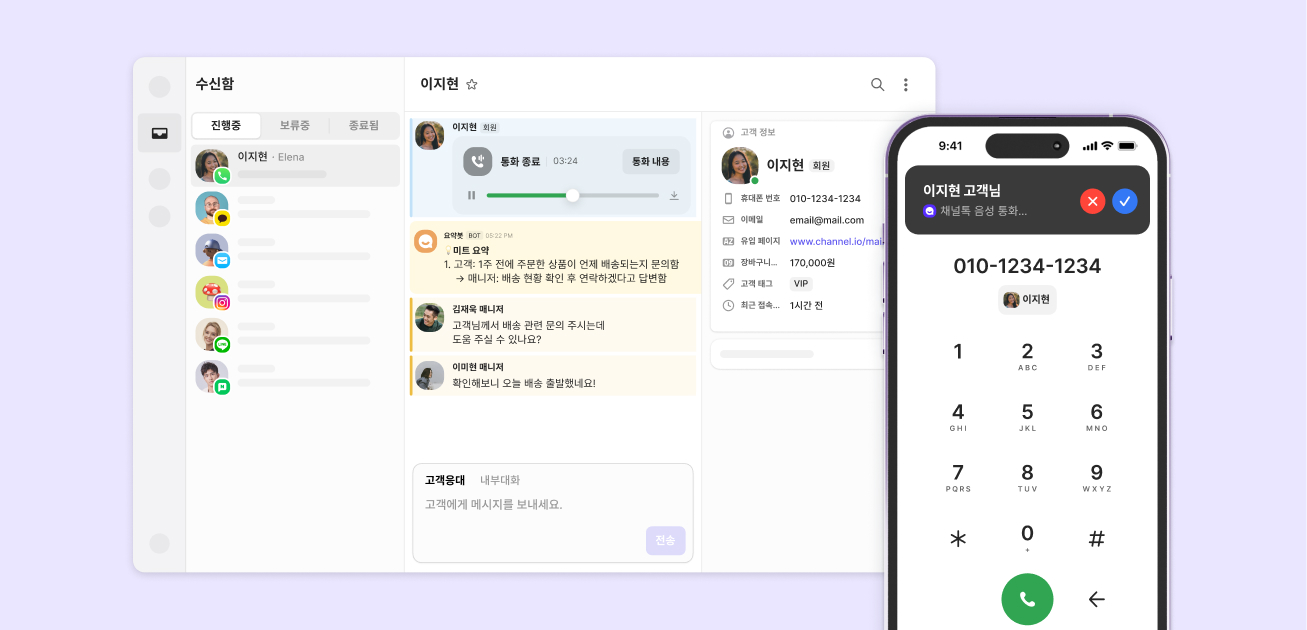 채널 전환 없이 바로 응대할 수 있어요.