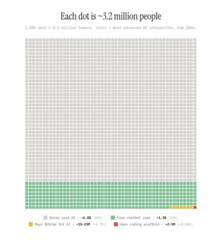 노란색: AI에 월 $20 정도 결제하는 사람들 (0.3%)