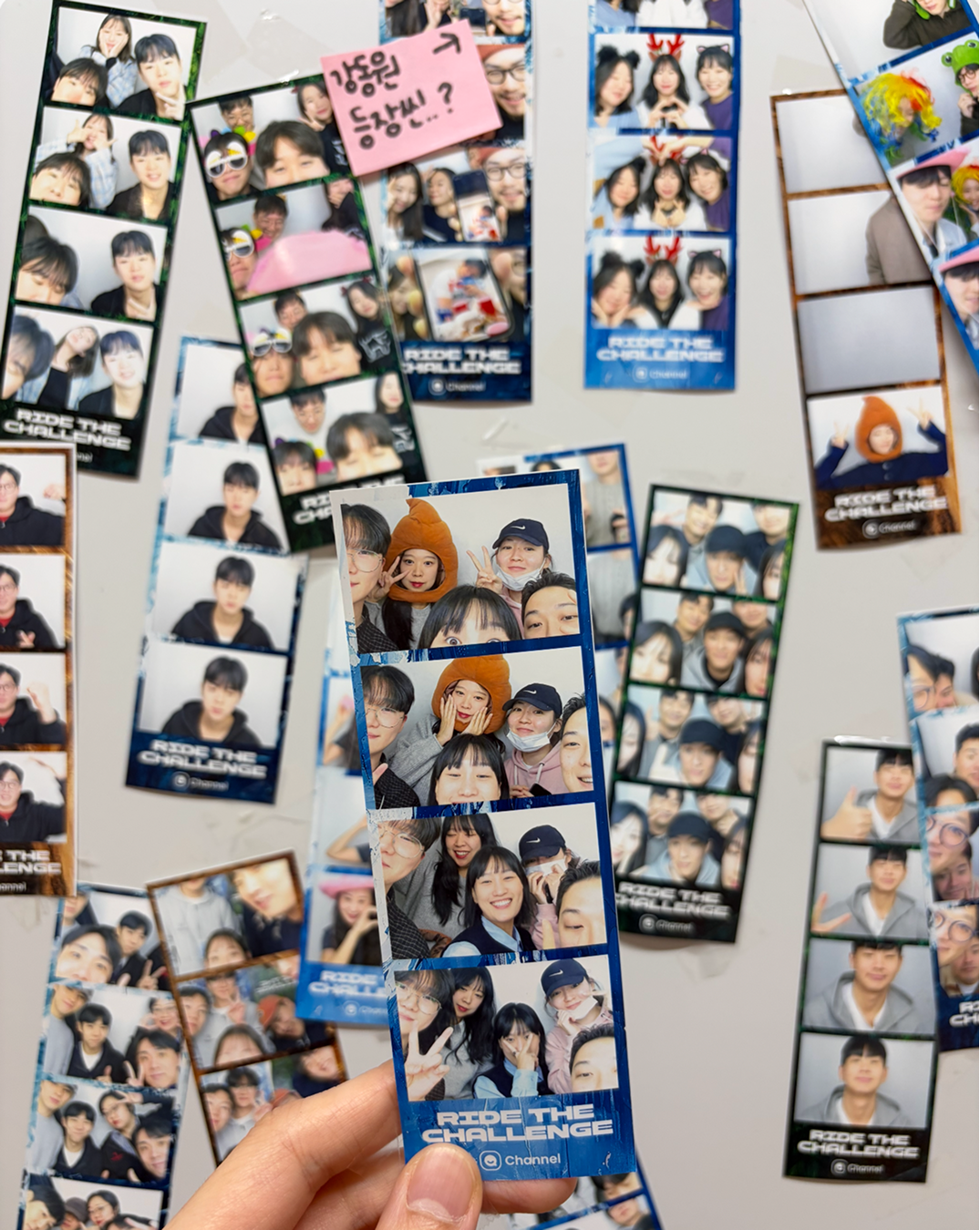 이외에도 다양한 이벤트가 있었어요. 채널라운지에 인생네컷 기기를 설치했어요. 한 해 동안 함께 했던 동료들과 소중한 추억의 사진을 남겼어요. 2026 RIDE THE CHALLENGE를 강조하기 위해 깨알같이 인생네컷 프레임에도 파도, 사막, 정글, 빙벽 콘셉트를 담았답니다.
