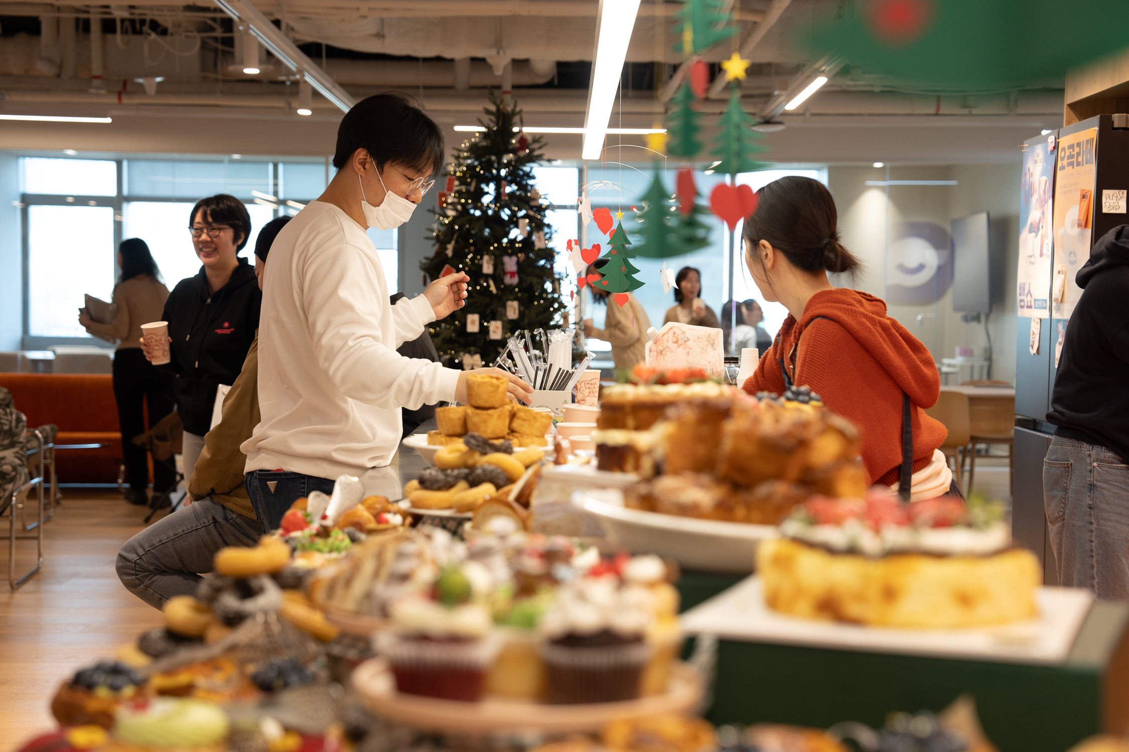 좋은 자리에 맛있는 음식을 빼놓을 수 없죠? 보기만 해도 맛있는 간식과 함께 연말 타운홀을 즐겼어요. 2026년 채널팀은 인재밀도를 더욱 높여 나가기 위해 앞으로 함께할 훌륭한 분들을 적극적으로 모실 예정이에요. 그리고 팀 멤버 각자가 스스로에게 도전하고, 또 동료에게 솔직한 피드백을 주고받으며 함께 도전하는 문화를 만들어 나갈 겁니다.