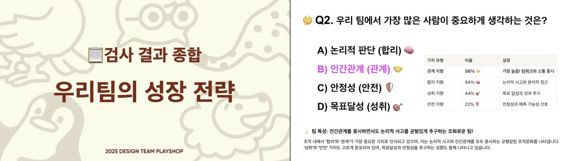 결과지를 서로 공유하며 진솔한 이야기를 나누었는데요.