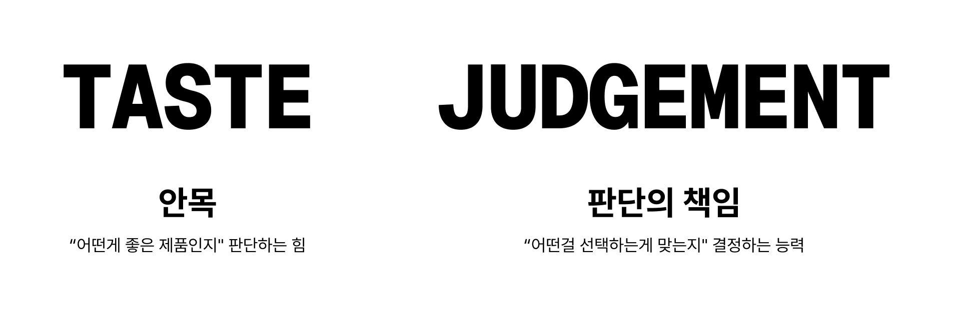 안목(Taste)은 "어떤게 좋은 제품인지" 판단하는 힘입니다. 두 개의 UI가 기능적으로 동일해도, 하나는 쓰고 싶고 하나는 아닌 이유를 설명할 수 있는 감각이에요. AI가 수백 개의 옵션을 제시해도, 어떤 것이 우리 제품에 맞는지 알아보는 감각을 길러야합니다.