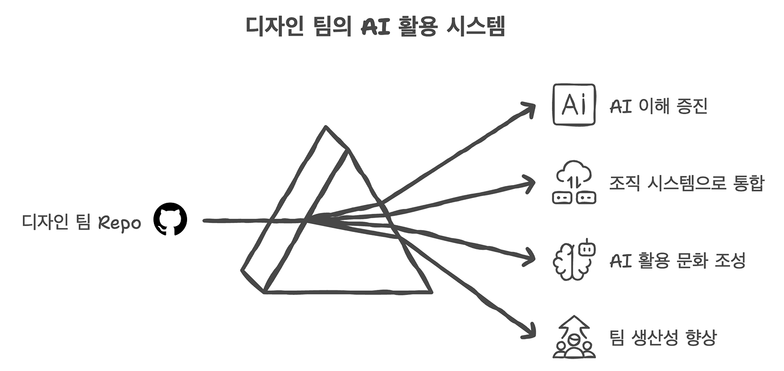 저는 디자인 팀이 AI가 어떻게 동작하고 어떻게 활용할 수 있는지 더 잘 이해해야 한다고 생각해요. 그래서 팀의 기본 AI 세팅을 디자인 팀 Repo + Claude Code CLI로 통합했습니다.