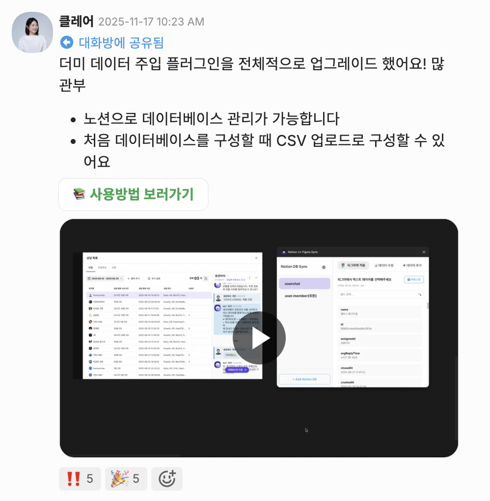 Notion 데이터 베이스에 더미 데이터를 저장해두고, 클릭 한 번으로 Figma에 적용하는 플러그인인데요, 오늘은 비개발자 디자이너가 어떻게 실무 문제를 직접 해결했는지 공유할게요.