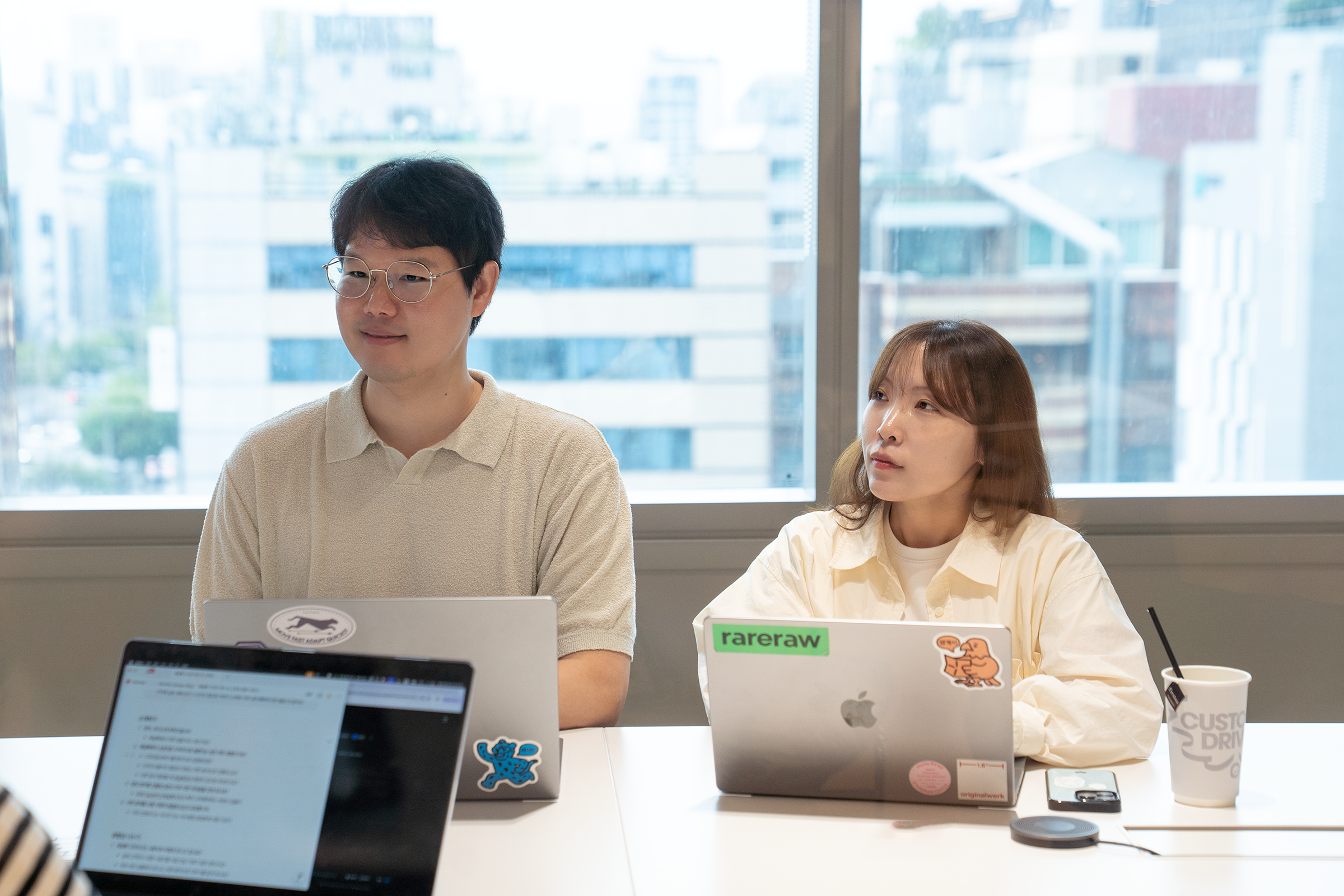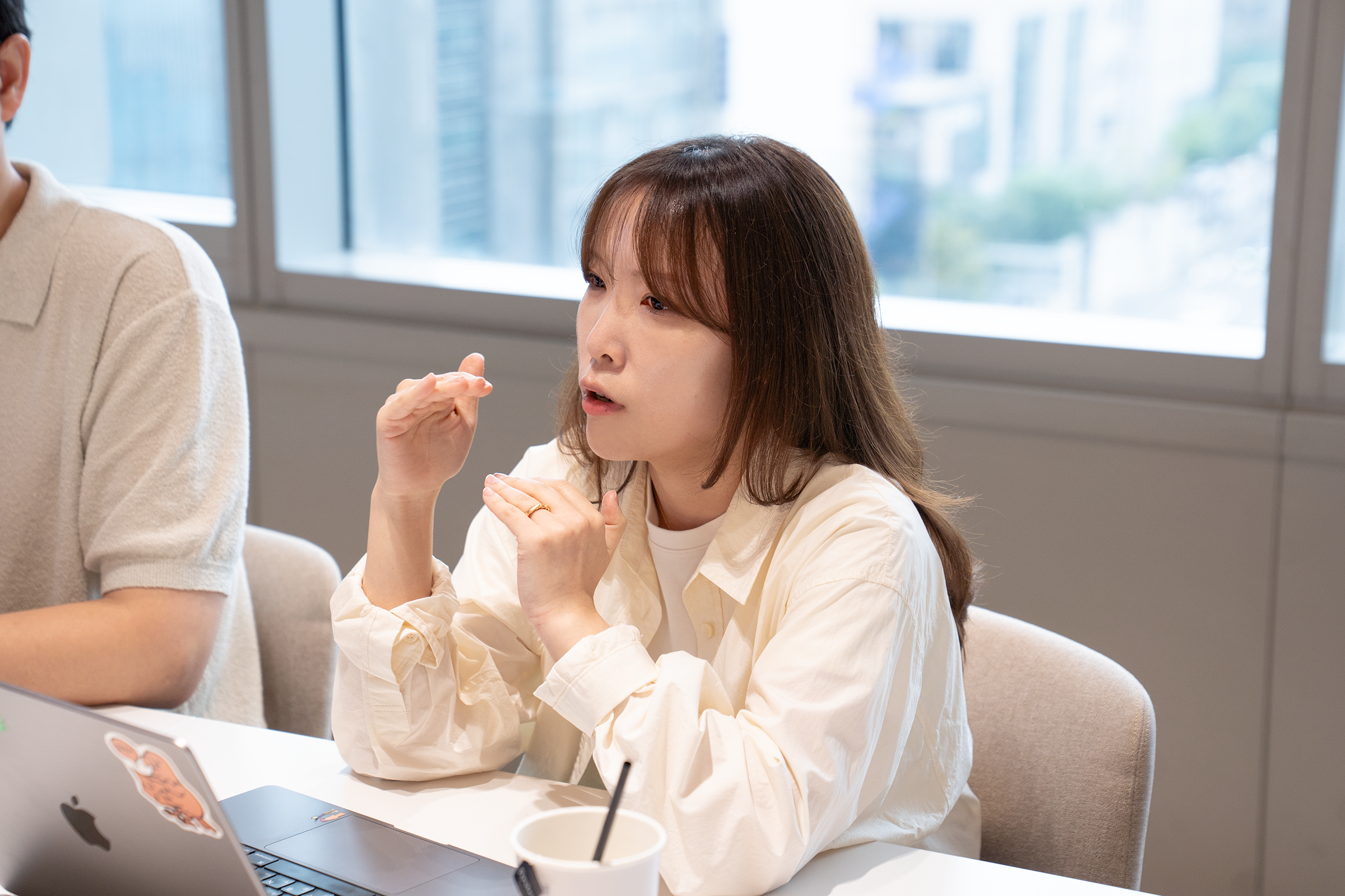 엠케이: 디자인팀은 유연하고 자유로운 분위기이지만 집중력이 강해요. 디자인 피드백을 굉장히 자유롭게 주고받는 편인데, 피드백을 유연하게 수용하거나 반대 의견을 자유롭게 낼 수 있어요. 또 다들 새로운 것을 배우고 적용해보려는 욕구가 강해서 새로운 기술이나 트렌드에도 유연하게 대응할 수 있는 팀이라는 생각이 들어요.