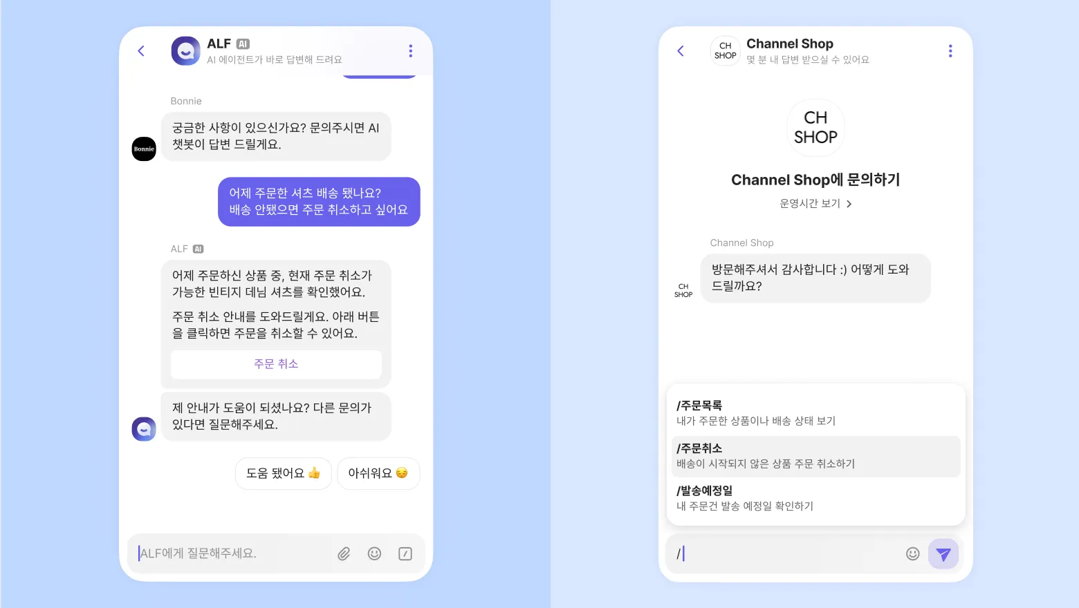 엠케이: 저는 채널톡 AI 에이전트 ALF를 담당하는 MK입니다. 최종 사용자가 ALF를 통해 문의를 쉽게 해결하고, 고객사가 최종 사용자에게 ALF로 만족스러운 상담 경험을 제공할 수 있도록 채널톡 관리자에서 다양한 설정 기능들을 만들고 있어요.
